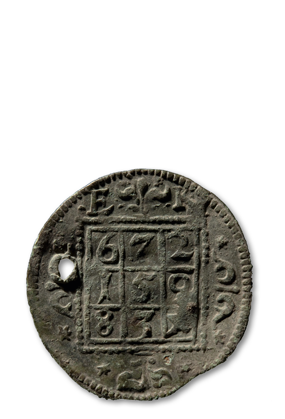 Das »Magische Quadrat« auf der Rückseite des in Isny gefundenen Exemplars erinnert an unser heutiges »Sudoku«, eine Gattung von Logikrätseln, die aus lateinischen Quadraten entstanden. Das in Isny gefundene »Magische Quadrat« sollte wohl Krankheiten und Tod abwehren. Es zeigt in neun einzelnen Quadraten die arabischen Ziffern 1 bis 9, die in der Summe aller Zeilen, Spalten und der beiden Diagonalen gleich sind. Diese Summe (15) wird als »Magische Zahl« des »Magischen Quadrates« auf dem »Magischen Amulett« bezeichnet. Rechnet man alle Zahlen zusammen, ergibt sich die Zahl 45. Das »Lo Shu« war schon zu Zeiten des legendären mythologischen Kaisers Yu (Regierungszeit von 2205–2147 v. Chr.) in China bekannt (wo es auch im Roman herkommt, weil es in Europa erst im 16. und 17. Jahrhundert beschrieben wird. Dies hat allerdings nichts mit dem in Isny gefundenen Exemplar zu tun). Im Westen hat sich unter anderem Adam Ries (1492 oder 1493–1559 n. Chr.) mit dem »Magischen Quadrat« beschäftigt. In seinem »Rechenbüchlin« gab er auf Seite 71 diese Aufgabe mitsamt der Lösung. Neben zwei Beispielen folgte: »Und darnach verwechsel mit den 8. und 2. also/ so hastu allenthalben 15. Denn alle Summen ergeben die Magische Zahl 15«. Text: »EK« für Egidius Krauwinckel, tätig in Nürnberg.