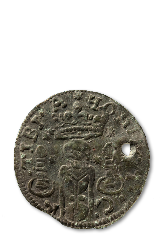 Das Amulett, um das sich in diesem Roman alles dreht, gibt es wirklich. 2018 wurde ein besonders bedeutungsvolles Exemplar bei Grabungsarbeiten auf dem alten Marktplatz in Isny gefunden, direkt beim dortigen »Prangerstein«, wo es beim großen Stadtbrand von 1631 oder schon zuvor in den Boden gelangte und die Zeiten überdauerte. 2019 wurde von Dr. Matthias Ohm vom Landesmuseum Württemberg bestimmt, dass es sich um einen sogenannten »Rechenpfennig« (auch als »Münzmeisterpfennig« oder in Süddeutschland als »Raitpfennig« bezeichnet) handelt, einen medaillenartigen Platzhalter, der im Mittelalter beim Rechnen auf der Linie (auf Rechenbrettern, -tischen oder -tüchern) verwendet wurde. Rait-, Rechen- oder Münzmeisterpfennige konnten daneben auch politische oder – wie im vorliegenden Fall und im Roman beschrieben – moralische Botschaften transportieren.