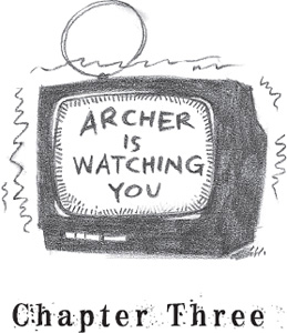 Howard and Fifi looked. Instead of a picture on the screen, there were four white words on a black background. They said: ARCHER IS WATCHING YOU. It seemed as if Archer was backing the Goon up.