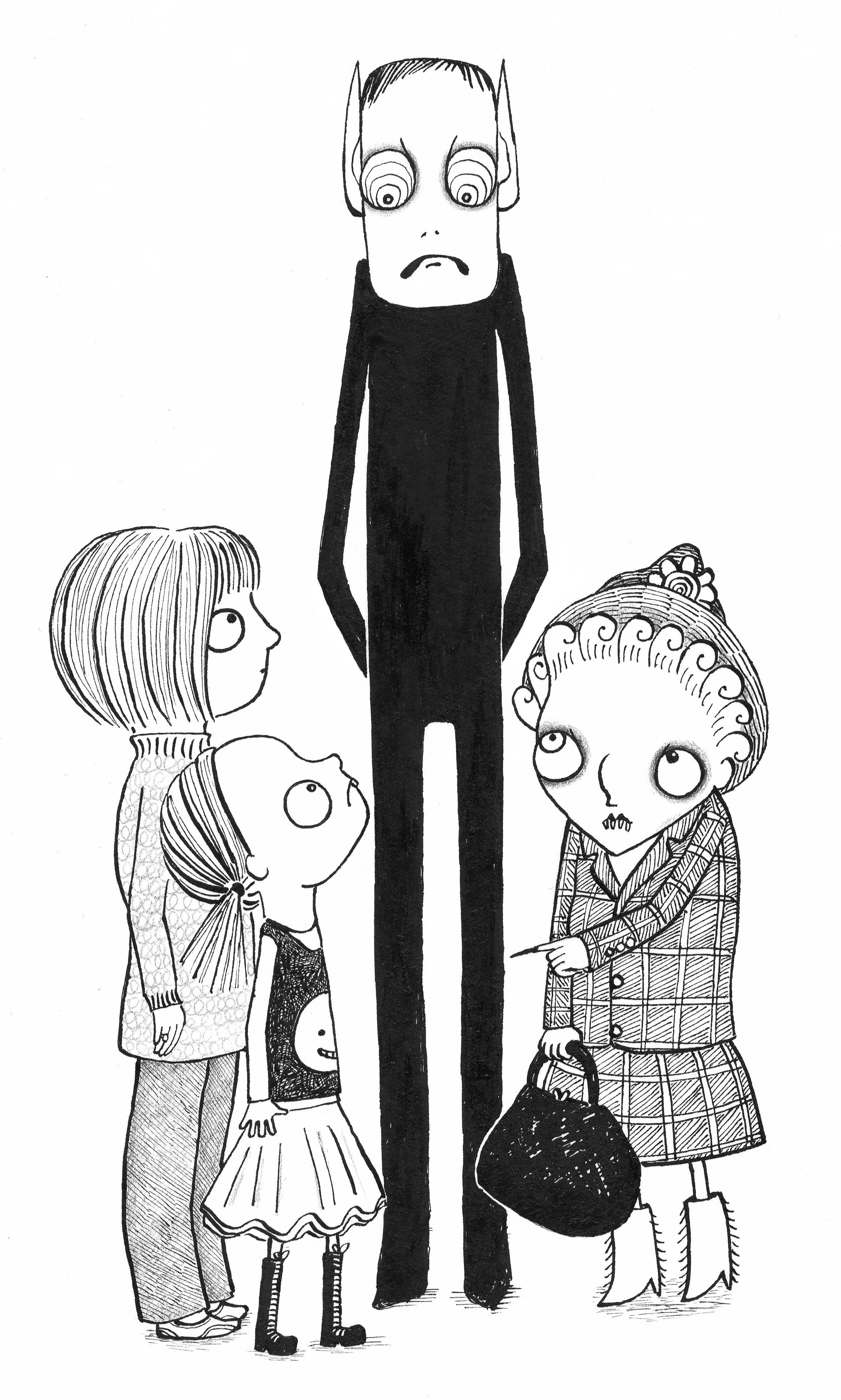 After that, there seemed nothing Earwig could do but go and help one of the trainee girls pack her things in a bag, while Mrs Briggs took the strange couple to her office to sign forms. Then she had to say goodbye to Custard and hurry after the woman in the red hat and the nine-foot man. The things on his head were horns, Earwig was sure. She was surprised nobody else noticed. But mostly she was angry and amazed that, for the first time in her life, somebody was making her do something she didn’t want to do. She could not understand it.