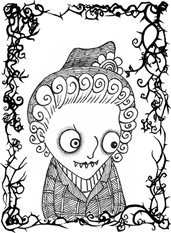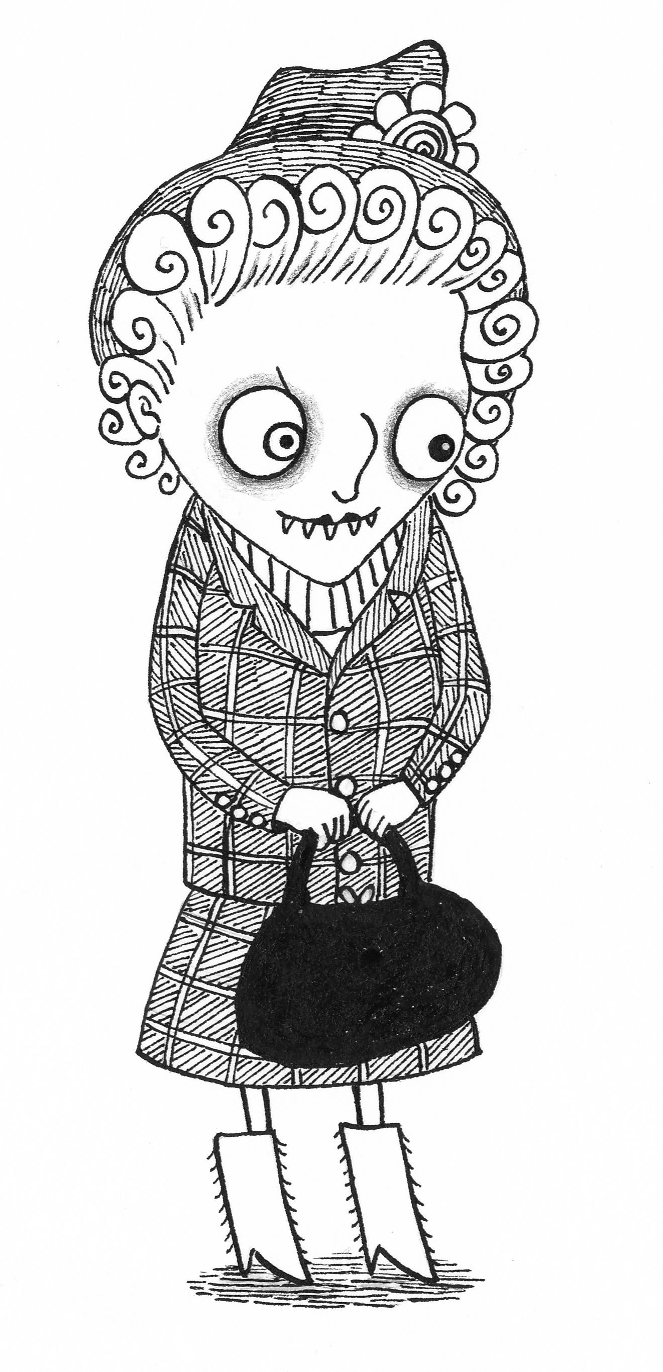 Earwig had only time to whisper warningly to Custard, “Remember to cross your eyes like I taught you!” before a very strange couple followed Mrs Briggs into the dining room. Earwig could see they had tried to make themselves look ordinary, but she knew they were not. Not in the least. The woman had one brown eye and one blue one, and a raggety, ribby look to her face. It was not a nice face. The woman had tried to make it nicer by doing her hair in blue-rinsed curls and putting on a lot of purple lipstick. This did not go with her brown tweed suit or her bright green sweater. And none of it went with her big red hat or her sky-blue high-heeled boots.