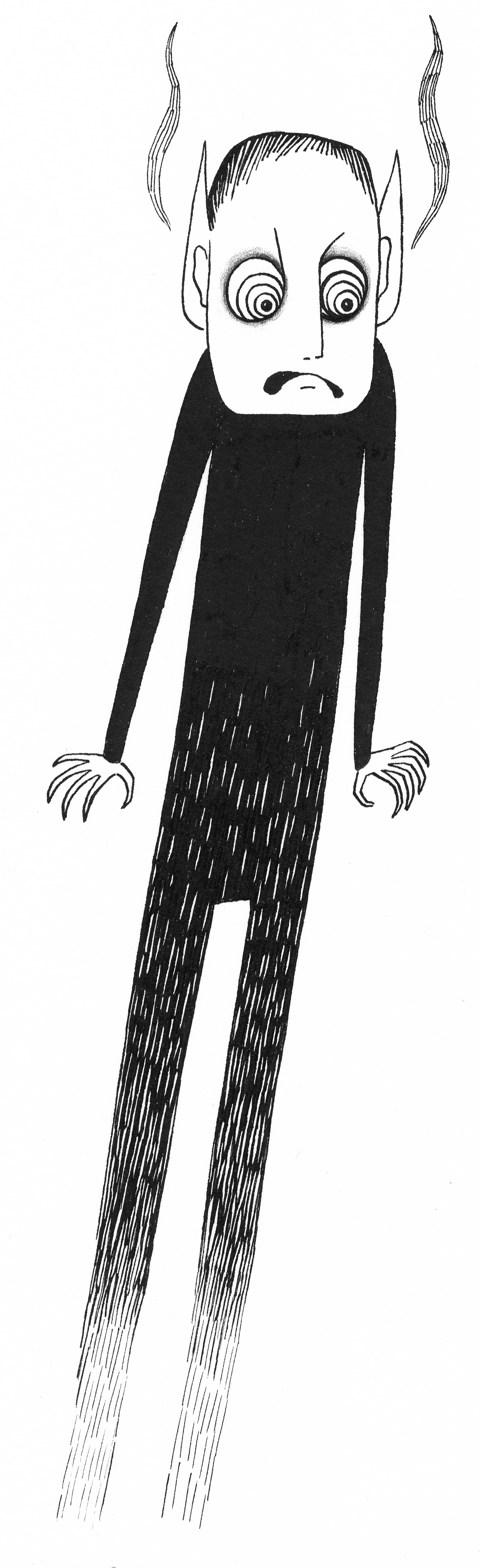 As for the man – the first time Earwig looked at him, he looked like anyone you might pass in the street. The second time she looked, she could hardly see him at all. He was like a long, black streak in the air. After that, every time she looked at the man, he seemed taller, and taller still, and his face seemed grimmer and more frowning. And he seemed to have long ears. By the time the man and the woman were standing in front of Custard, Earwig was almost sure that the man was nine feet tall and that he did have two somethings sticking up from his head. The somethings could have been ears, but Earwig rather thought they were horns.