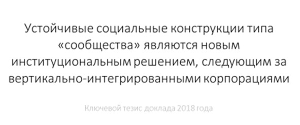 Сообщество – это место генерации нового знания, пространство плотного взаимодействия пассионарных, сильных людей. То есть в пределе это место появления пользы, прибавки, генерации нового социально-экономического порядка.