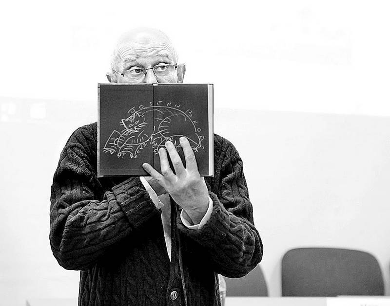 Магический кот Иосифа Бродского в своем доме под обложкой книги (презентация на Международной книжной ярмарке non fiction 2017 в Москве).