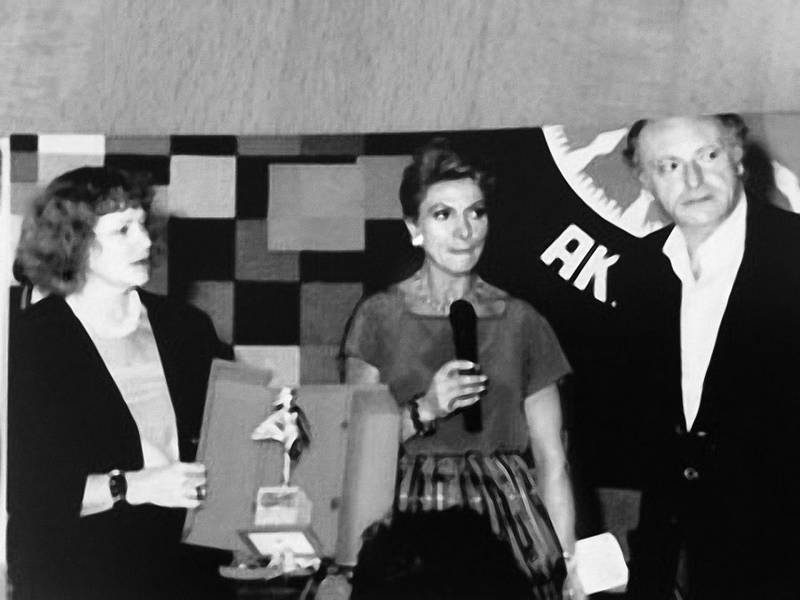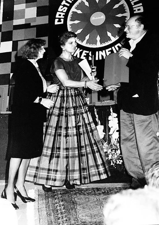Эвелина Шац, ведущая итальянского телевидения, и Иосиф Бродский на церемонии вручения поэту литературной премии Кастильоне-ди-Сичилиа 28 июля 1990 года.