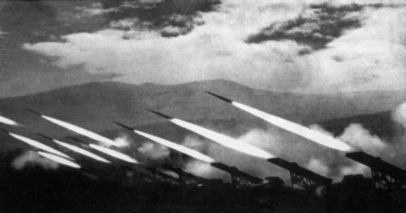 В этот критический момент к месту скопления гитлеровских войск были выдвинуты «катюши». Во время залпа никто не должен находиться на огневой позиции. На направляющих 64 ракеты. Позади кабин ящики с толом (для подрыва установок в случае захвата их противником). Сбой хотя бы в одной из ракет может привести к печальным последствиям.