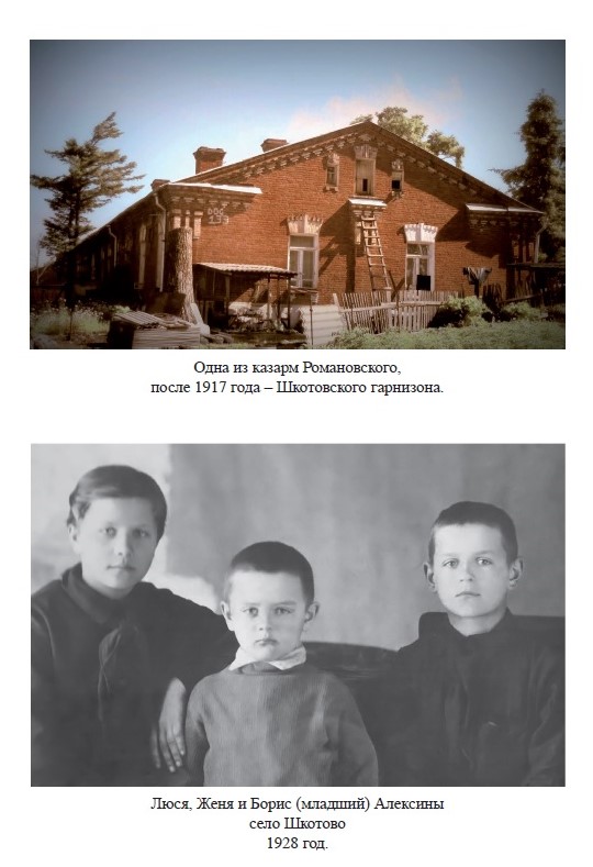 Шкотове, тут он родился, тут и жил всё время, тут и учился сперва в начальной, а затем и в высшеначальной школе; то же самое было и с Володей Кочергиным – его родители (крестьяне из села Новороссия) всю жизнь прожили в этом селе, а он, окончив высшеначалку, поступил работать секретарём в волостной совет в Шкотове, где и работал в то время. Ни один из них дальше Владивостока не бывал, да и там-то они были едва ли два-три раза за всю свою жизнь.