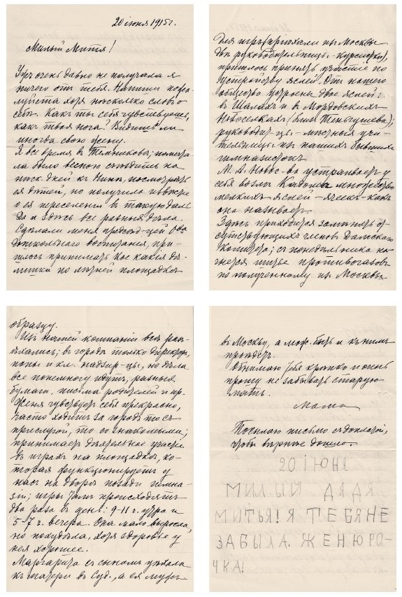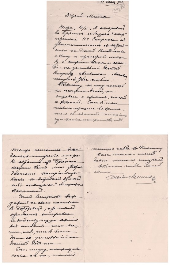 Оригинальные документы и письма из личных архивов семей Алексиных и Пигут