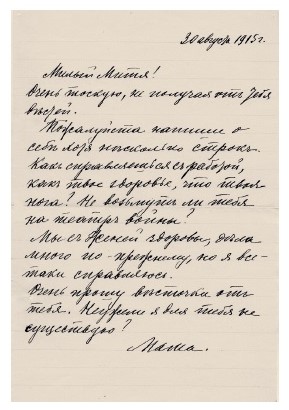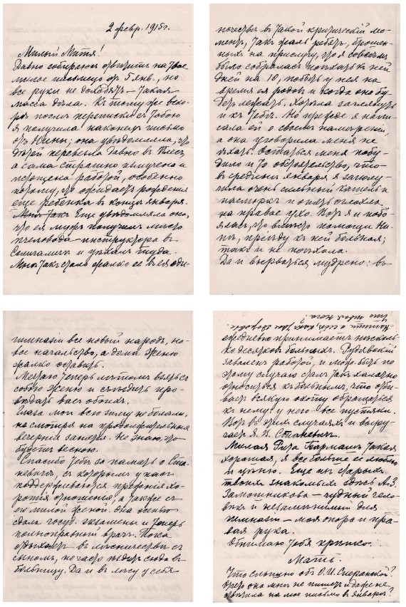 Письмо Марии Александровны Пигуты (Шиповой) от 2 февраля 1915 г.