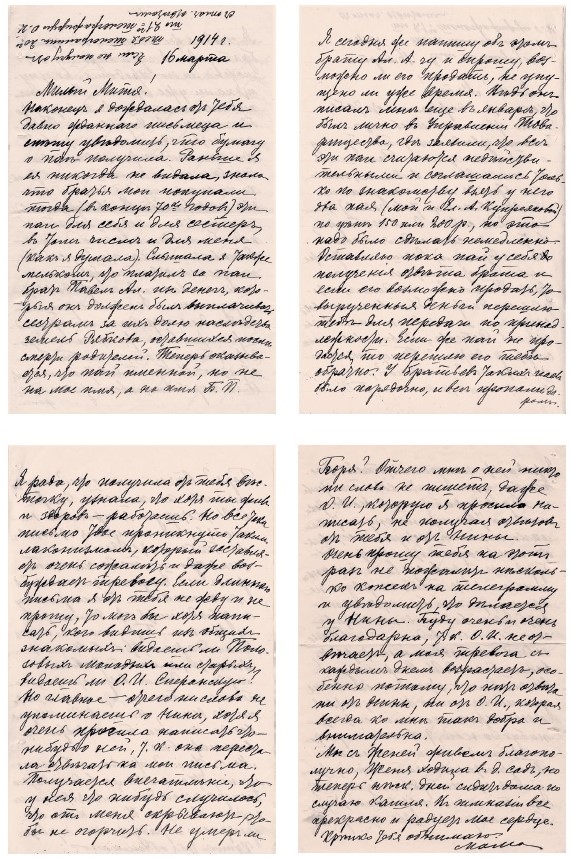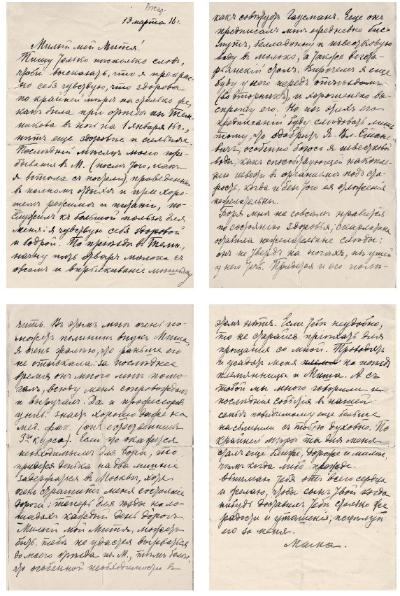 Письмо Марии Александровны Пигуты (Шиповой) Дмитрию Пигуте от 16 марта 1914 г.