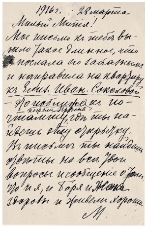 Письмо Марии Александровны Пигуты (Шиповой) от 28 марта 1916 г.