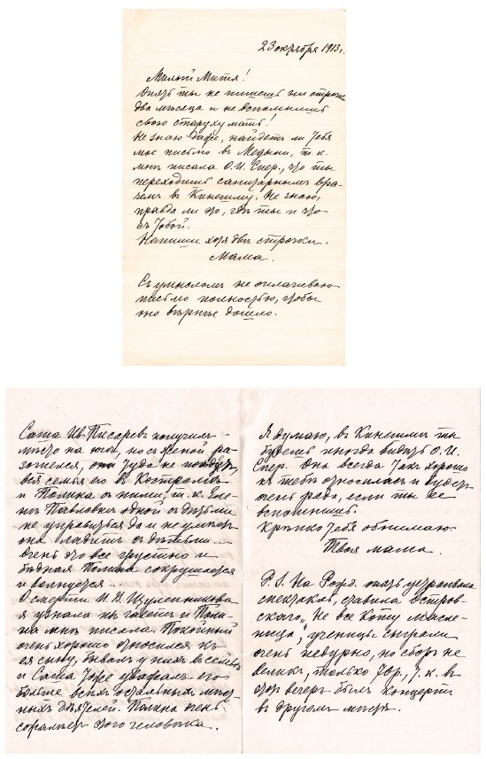 Письмо Марии Александровны Пигуты (Шиповой) Дмитрию Пигуте от 23 октября 1913 г.