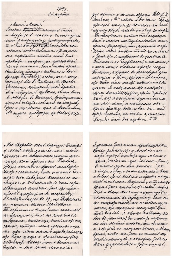 Письмо Марии Александровны Пигуты (Шиповой) Дмитрию Пигуте от 30 марта 1914 г.