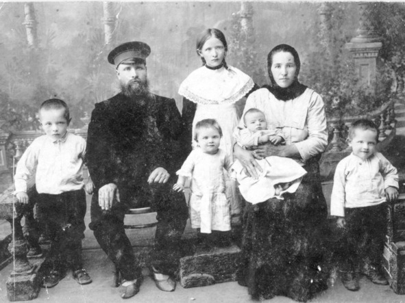 Перед отправкой Якова Васильевича в армию. Ганя справа. В центре – его старшая сестра Настя (Стюра).