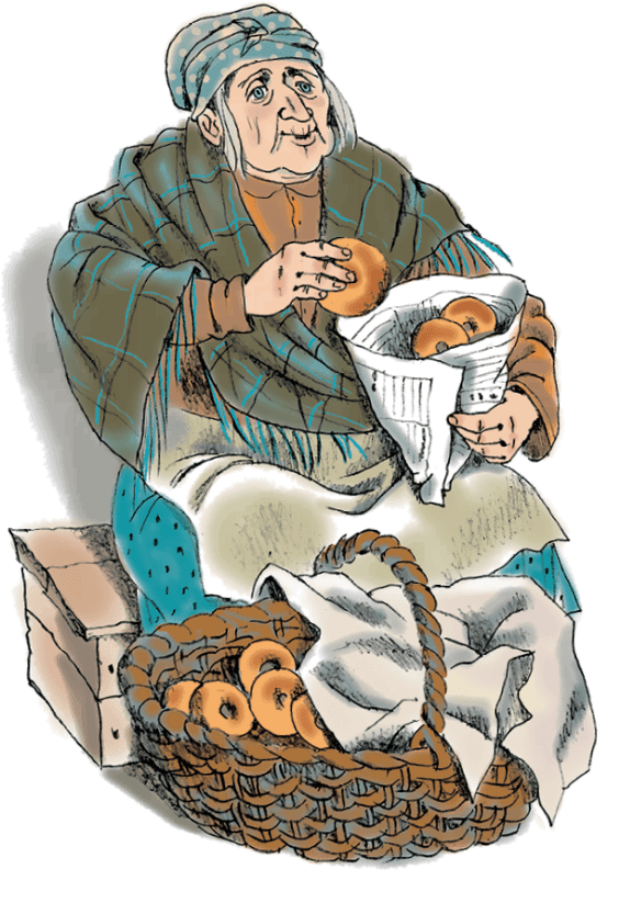 – Цела она, баушк, корзинка твоя. И бублики целы. Я их тут, за углом, у добрых людей поставил. Сейчас кадку захвачу, и пойдем за бубликами твоими…