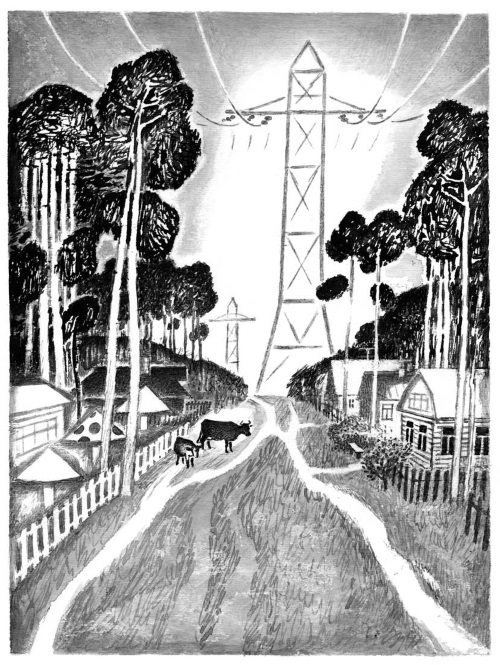 Эта широченная улица когда-то давно была просекой в сосновом лесу – её прорубили для мачт высоковольтной линии. Эти мачты-великаны и сейчас несут высоко в небе на своих железных плечах натянутые провода.
