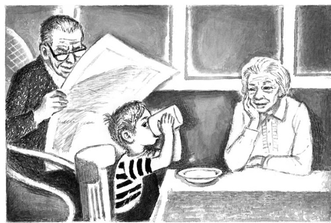 Схватив полотенце, она стала вытирать клеёнку такими решительными кругами, что прадед предпочёл забрать свою газету и перебраться в качалку.