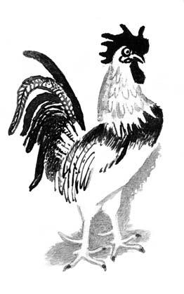 Ни одной курицы у них нет, только петух. И то он появился у них совершенно случайно, ещё в прошлом году. Матвей тогда заболел и стал худой, и бабушка из Ленинграда написала сюда прабабушке, что ребёнку (это значит Матвею) нужно варить бульон из свежего мяса. А мясо в магазине продавалось только мороженое. Его морозят в холодильниках, чтобы оно летом, в жару, не портилось. Прабабаша сказала: «Нет уж, лучше я сварю бульон из птицы» – и попросила соседку купить на рынке курицу. А соседка привезла цыплёнка. Оказалось, что она купила живого, смешного и весёлого, и, конечно, никому в голову не пришло варить из него суп, а стали кормить его пшеном, и он у них стал жить.