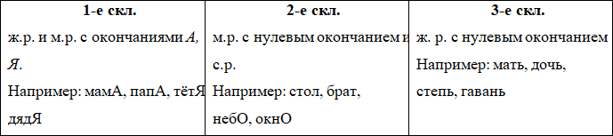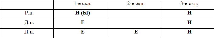 Безударные окончания Е, Ив именах существительных 1-го, 2-го и 3-го склонения