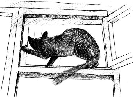 Сначала он просил открыть дверь требовательным мяуканьем. Баба Мавра впускала и награждала кота валенком по спине. Но не нравился валенок Кысу. Он подглядел, как на кухню приходят дети. Дверь они открыть не могут – тяжелая, поэтому дотягиваются до железной щеколды с длинной ручкой и начинают ею греметь, пока им не откроют дверь. То же самое делали чужие взрослые, прося разрешения войти. Так вот, хитрый Кыс перестал мяукать и научился вспрыгивать на ручку и соскакивать с нее. Щеколда громыхала, как будто ее трогал человек. Баба Мавра открывала дверь без валенка. Чтобы Кыс не поднимал ее ночью, она попыталась оставлять его в корпусе. Вот тут-то и началось наше «вымораживание». Будучи аккуратным котом, Кыс не мог позволить себе пачкать в помещении. Вот он и облюбовал мое окно. Видно, оно легче других открывалось. Решила я проверить предположение кухарки. Первую ночь укараулить не удалось. Заснула. На вторую опять задремала. Проснулась оттого, что Кыс прыгнул мне на ноги. Я замерла в ожидании неопровержимых доказательств. Кот вскочил на подоконник, подпрыгнул, вонзил когти одной лапы в раму, а другой принялся бить по крючку снизу. Не сразу у него получилось. Он сваливался, опять залезал, но своего добился. Отдохнул. И опять завис, пытаясь подцепить форточку когтями. Она неплотно прилегала. Кыс ее быстро открыл. Со второй форточкой ему было проще, так как он удобно оседлал первую раму. Процедура повторилась. Несколько минут – и кот на снегу.