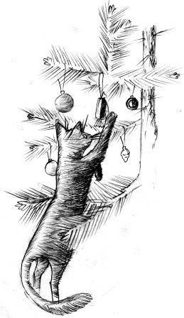 Попыталась найти их. При этом сильно наклонилась и потеряла равновесие. Чтобы не упасть, осторожно взялась за ветку. Но елка зашуршала, игрушки зазвенели, как нежные колокольчики. Я оцепенела. В следующее мгновение кто-то прыгнул мне под ноги и помчался к двери. Я сначала испугалась. Но, когда столбняк прошел, спокойно рассудила: