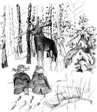 Вдруг Витя замер на месте с открытым ртом, и я увидела шагах в пятидесяти от нас лося: огромный, великолепный, с гордо поднятой головой, мощными рогами. Благородный красавец-лось переходил дорогу, а мы помешали ему. Но он не побежал, как лосиха. Он только остановился и замер. Ни страха, ни волнения во внешности гиганта, только огромное чувство собственного достоинства, уверенность, царственное спокойствие. Постоял пару минут и, не спеша, продолжил свой путь. Даже не повернул голову в нашу сторону. Не удостоил. Зачарованные, мы еще некоторое время стояли молча. Мои ноги не двигались, только немного дрожали. Не от страха, от радостного возбуждения.