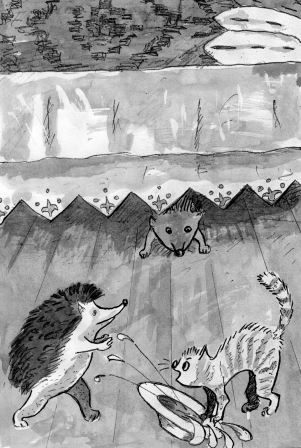 О наших ежах сначала узнали соседские ребята, а вскоре и вся школа. Всем хотелось играть со зверюшками. Выход нашла учительница анатомии. Она предложила создать живой уголок. Ребята, особенно класс, где учился мой брат, восприняли сообщение с восторгом. А нам жалко было расставаться с любимцами. И тогда мать принесла нам тощенького серого котенка. Вид у него был жалкий, грустный. Но вскоре Мурзик обвыкся и уже как хозяин ходил по всему дому. А как-то вечером он обнаружил блюдечко с молоком и начал лакать. Тут из-под кровати притопал «сынок» и пристроился рядом с ним. Котенку почему-то не понравилось такое соседство. Он принял угрожающую позу: выгнул спинку, хвост трубой поднял – и зашипел. Ежик спокойно продолжал пить. Котенок осмелел и толкнул его лапой в нос. Ежик сердито фыркнул и отскочил от блюдца. И тут произошло неожиданное: Мурзик взлетел с пронзительным криком, перевернулся несколько раз в воздухе и шлепнулся на пол. Я не поняла, что случилось. И только когда Коля поднял раненого котенка, я услышала знакомые звуки «шлеп-шлеп». «Сынок» и взрослый еж убегали под кровать. Мы с Колей перевязывали окровавленный животик Мурзика, а бабушка вздыхала: