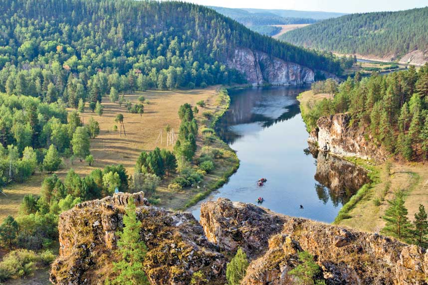 К западу от Ярмантау и Иремеля высота хребтов Южного Урала постепенно снижается, пока они совсем не исчезают в башкирских степях. А к востоку Южный Урал круто обрывается к подступающей к нему Западно-Сибирской равнине. В целом весь Южный Урал весьма привлекательное для туристов место – для многодневных походов, занятий альпинизмом, рыбалки и сплава по горным рекам.