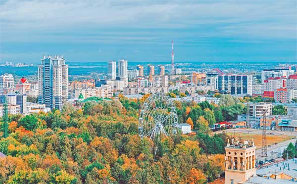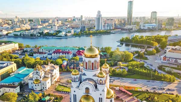 Вид на Екатеринбург и Храм-памятник на Крови во имя Всех Святых, в земле Российской просиявших