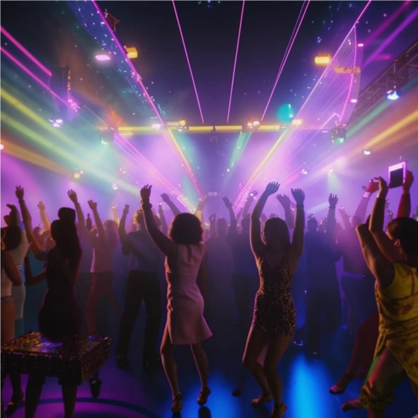 Институтская дискотека. Начало 80-х. Теперь на танцполе темнота и только вспышки разноцветных прожекторов – светомузыка (цветомузыка). Обязательный зеркальный шар под потолком. Дискотеку крутит дискжокей. Дискотека 80-х – это чудесные мелодии и запоминающиеся на всю жизнь тексты песен.