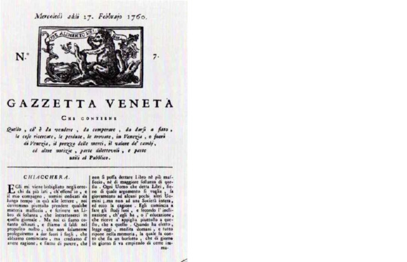 Рис. 1. «Gazzetta Veneta» Гаспаро Гоцци, 1760 г.
