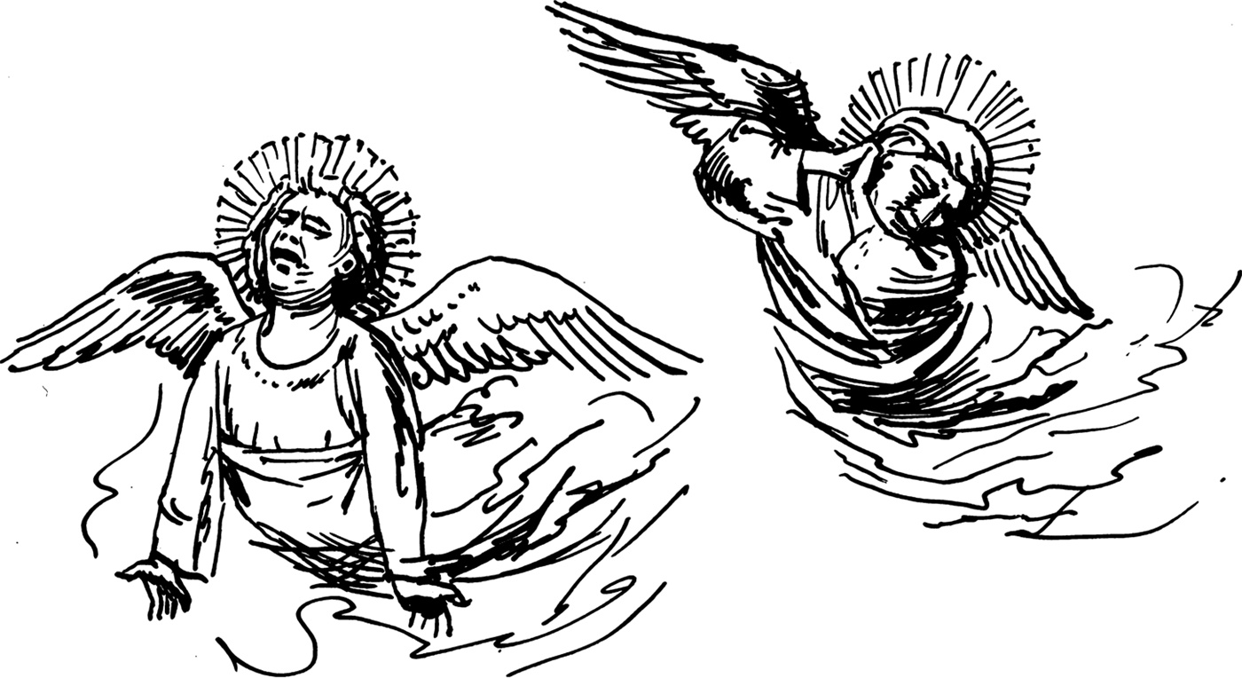 Персонажей много, и каждый из них выражает свои (подчеркнем – свои) эмоции. Достаточно посмотреть на верхнюю часть фресок, где витают ангелы. Маленькие живые существа с крыльями и исчезающими телами, их жестикуляция, их мимика (но нужно всматриваться!) отражает весь набор человеческих эмоций. Ангел утирает рукой глаза, и мы понимаем, что он плачет. Эти маленькие фигурки, парящие в небесах, это не знаки, это живые существа, радующиеся или оплакивающие происходящее внизу на земле. Вся живопись Джотто это путь эмоционального реагирования. Художник оставался в своем времени, заметно, что многие лица, особенно женские, писаны с одного лика, но при этом каждое лицо выражает свое эмоциональное состояние.