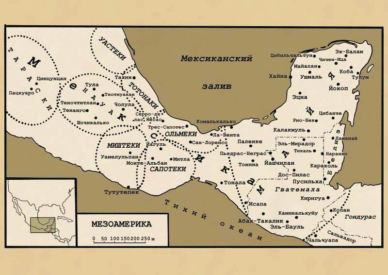 Широкой общественности древние майя в основном известны благодаря «концу света 2012 г.» – новости, растиражированной средствами массовой информации. Слово «ацтеки» тоже не вызывает вопросов благодаря массовой культуре. Как правило, географическое расположение и период существования этих двух культур сомнений не вызывают. Однако мало кто знает, что регион, который населяли майя и ацтеки, был выделен в отдельную культурно-географическую зону Мезоамерики. Этот термин был введен в научный оборот Паулем Кирхоффом в 1943 г.[1] В своих исследованиях немецкий антрополог, работающий на тот момент в Мексике, опирался на исторические и этнографические особенности. Позднее его концепция была слегка переработана, чтобы быть применимой к археологическому материалу[2]. Данная культурная область включает в себя территории Мексики южнее реки Лерма, Гватемалу, Белиз, Сальвадор, западные районы Гондураса до реки Улуа и озера Йохоа, а также Тихоокеанское побережье Центральной Америки вплоть до полуострова Никоя в Коста-Рике. Вся эта территория крайне разнообразна по климатическим и экологическим характеристикам, так как представляет из себя комбинацию гористой местности, прибрежных равнин и известняковых платформ на Юкатане, при этом будучи расположенной в тропических и субтропических широтах. Традиционно ее принято делить на районы высокогорья и низменности. Вдоль Тихоокеанского побережья тянется горная цепь с вулканическими хребтами; районы Центральной Мексики достаточно засушливые, побережье Мексиканского залива, полуострова Юкатана и центральные низменности Гватемалы покрыты густыми лесами. Такое природное разнообразие всегда сопровождалось пестрой культурной и языковой картиной. Культурные центры возникали и угасали, однако все их объединяли единые религиозные представления, схожие производственные и сельскохозяйственные технологии.