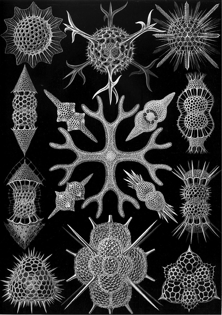 Гравюра из книги Эрнста Геккеля «Красота форм в природе» (1904). Ernst Haeckel. Kunstformen der Natur (1904), plate 91: Spumellaria