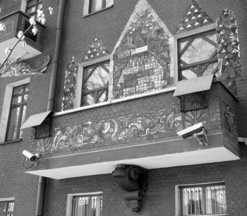 Ныне эти дивные фасадные панно со стилизованными изображениями змей, медведя, быка, рыбы и солнца – один из ярких примеров того, что темпы, эстетика и качество на этой сложнейшей в архитектурном отношении стройке (дом был возведен всего за одиннадцать месяцев) шли рука об руку. По совету Малютина домовладелец Перцов доверил изготовление майолики молодым художникам Строгановского училища. Эти талантливые, но совсем не деловые ребята сидели в ту пору без заказов. Их маленькая артель под уютным названием «Мурава» дышала на ладан. Но Перцов рискнул. И выиграл. Заказ был исполнен в срок. С точным воспроизведением рисунка и раскраски. Да еще так добротно, что, по свидетельству реставраторов, за весь более чем столетний период существования этих полотен ни одного случая повреждения глазури не наблюдалось.