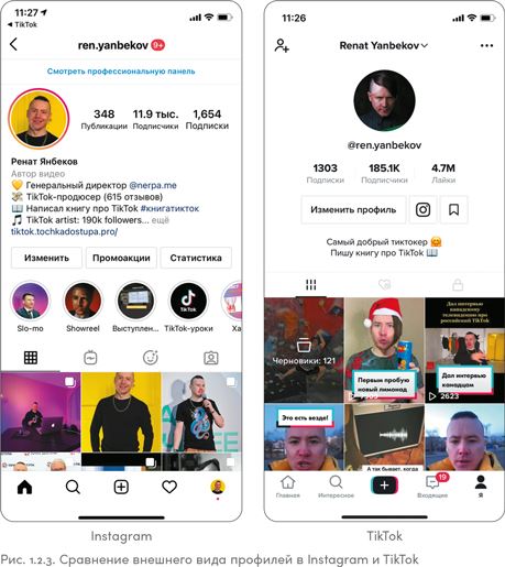 Если вы опытный пользователь Instagram, то без труда разберетесь в интерфейсе TikTok, поскольку они почти идентичны (рис. 1.2.3).