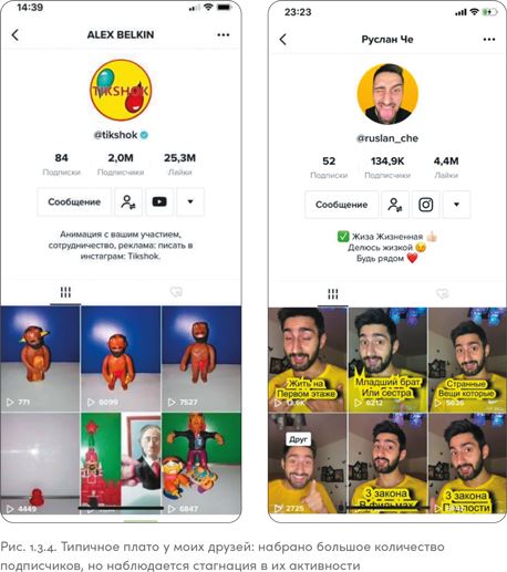 Профиль пользователя TikTok немного похож на профиль в Instagram: в нем тоже есть аватар, описание профиля с указанием количества подписчиков и лента постов пользователя (рис. 1.2.2).