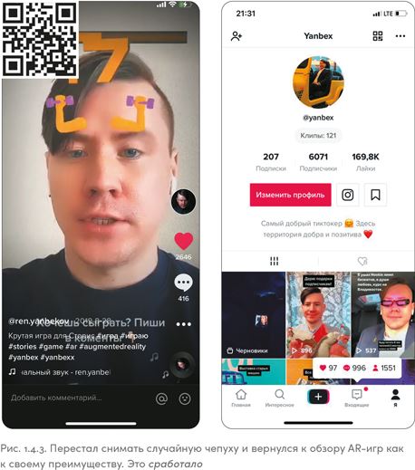 Как вы думаете, почему возврат к публикации AR-игр принес результат? Потому что при публикации тематических видео мой аккаунт приобретал не самую яркую, но всё же концепцию. Концепцию моего аккаунта можно было описать примерно как «парень, который демонстрирует AR-игры».