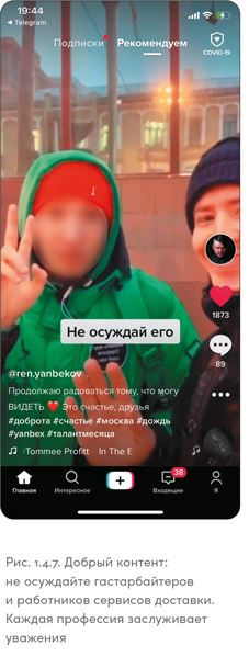 «Тренд» и «Челлендж» – это видео с повторяющейся механикой (танцы, особые жесты и движения). Если какой-либо музыкальный трек в TikTok и сопутствующие ему движения становятся популярны, каждый тиктокер может принять «челлендж» (то есть вызов) и снять свою версию. Подробнее об этом в разделе «Треды и челленджи» в главе 4.
