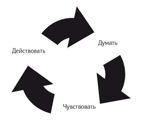 Психологи уже давно знают, что действия, мысли и чувства связаны друг с другом в виде цикла или замкнутой петли. Предположим, девушка нервничает из-за того, что ей в одиночку придется пойти на какую-то вечеринку. Поэтому она действует – остается дома. Ее мысли о том, что она всегда будет одинокой, вызывают у нее чувство подавленности, из-за чего ее уверенность в отношении будущих вечеринок становится еще слабее.