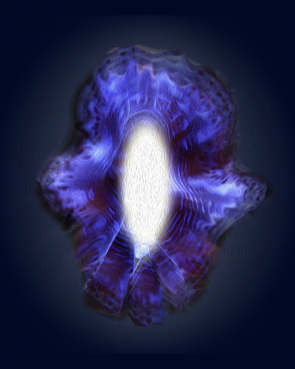 После я повернулась в другую сторону и увидела «нечто» мне не понятное. Оно напоминало светящийся овал, обрамлённый бархатными кружевами разного цвета, как у глубоководных моллюсков. Они так же волнообразно двигались и переливались синим, пурпурным, розовым, фиолетовым… почти всеми цветами, которые могут существовать в моём восприятии.