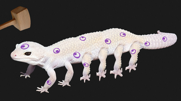 Ящерка переползла наверх и, держась задними лапками за невидимый потолок, нависла над моей головой. Недолго думая, я запустила в неё своим воображаемым молоточком, и она без промедления ретировалась с моего пространства.