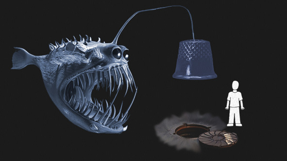 Мы оба пробрались вверх. Я увидела нечто круглое. Оно было похоже на рыбу, называемую глубоководный удильщик, только очень большую. Её ещё именуют гигантским морским дьяволом. Только вместо фонарика на кончике удочки у этой рыбы находился колпачок, которым она меня и накрыла. Никакого страха перед ней не было: рыба и рыба. «Приплыла тут толстушка и заслоняет мне вид», – подумала я. Мысленно вооружилась детской игрушечной боксёрской перчаткой на пружине и зарядила по этому шарику. Тень пропала. Я осталась одна, но опять ненадолго. Рыба вернулась обратно и зависла на том же месте, что и раньше. Тогда я вспомнила слова Тимура, что нужно попробовать отнестись к ней с любовью, и побежала навстречу с распростёртыми объятиями. Появилось такое ощущение, будто она испугалась, подумав, что я не обниматься к ней бегу, а пытаюсь схватить её и лопнуть, как воздушный шарик. Как же стало смешно, когда она сама ретировалась из моего пространства. Поняв, что больше ничего надо мной не висит, я спокойно заснула.