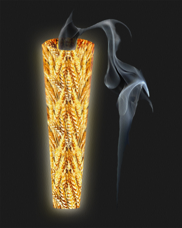 Лия приступила к левой ноге. Ощущения те же, но образы совсем иные. Цвет всего пространства ноги начиная со ступни стал бело-жёлтым, почти золотым. Внутри полого пространства, как будто в конусной вазе, начали взращиваться колоски пшеницы. Они росли, и их усики тянулись всё выше и выше за руками Лии. В итоге сам конус стал плотным и сформированным из усиков колосков, которые светились золотым светом и заканчивались на уровне таза. Лия взялась обеими руками снизу за ноги и растирающими движениями повела их вверх.
