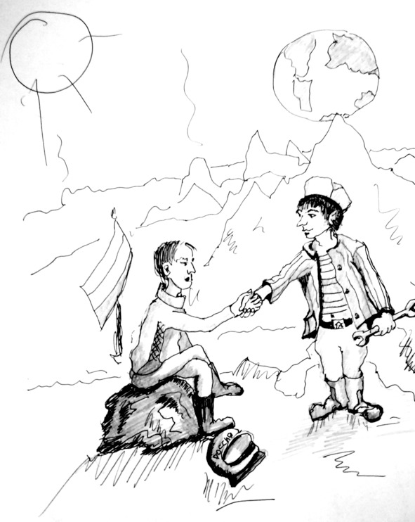 Довелось мне, как то разОдному слетать на Марс,Посмотреть куда – чего,Может встречу там кого,Если атмосфера в норме,Сразу доложить по форме…Примарсился на ФарсидуВроде никого не видно,Рядом Арсия- вулкан,Строго соблюдаю план.Голосят светодиоды:– Марс богатый кислородом!Я скафандр сразу снял,Он движения стеснял..Тут же выхожу на связь,Говорю не торопясь:– Примарсился всё о, Кей,Тут на Марсе нет людейИ планету её мать,Можно смело заселять.Продолжаю мысли нить:– На планете можно житьИ дышать свободно можноЧерез раз, но осторожно.Тут на Марсе вроде лета,Разложился, жду ответа.…Хорошо так, как в раю,Борщ из тюбика жую…Помню на планёрке важнойМат стоял семиэтажный,Больше всех один орал,По манерам генерал —Мол: – Лицо не урони,Если, что не подведи,Коли разум там какой – тоСразу сообщи домой -то,В Марс воткни Российский флагЕсли, что входи в контакт,В пекло попусту не лезь,Не поможем, мы же здесь,До тебя полезли трое,Если, что умрёшь героем…– вспоминаю, тихо ржу,В даль задумчиво гляжу,Ни детей нет, ни жены,Ни заботы, ни вины,Ни долгов нет, ни зарплаты,Нет ни бедных, ни богатых…Вдруг какой то слышу шум,Оторвался я от дум.Из расщелины земли,В телогрейке весь, в пылиПоявился гуманоидИ на чисто русском кроет.Форма черепа – арбуз,Но в глазах печаль и грусть.Марсианин его так,Что ж держись! Вхожу в контакт,Говорю ему: – Дружище,Ты чего один тут рыщешь,Здесь кругом равнины сплошь,Где твой дом и с кем живёшь?Тут ни речки, ни пруда,Нет ни женщин ни вина.Отвечай давай без фарса.Что ты делал в недрах Марса?Тихо шепчет существо:– Подскажите, где метро?Я сюда попал случайно,Помню еду на комбайне,Выпил бражки, пол глоточка,Очутился в данной точке,Как попал сюда вопрос?Только ехал-то в колхоз,Жинка очень уж строга,Обломает в раз рога.Я её подлючу знаю,Скажет с бабой изменяю,Полетит сковорода…В общем я попал! Беда!Я молчу в ответ, смешноМужика быть не должно,Может действует погодаИль нехватка кислорода.– Здесь! На Марсе? -Это блажь,Русский комбайнёр – мираж!Как он прилетел с Земли,И вдруг вылез из щели?Головой в ответ качаюБудто бы не понимаю,Выхожу с бюро на связь:– Экспедиция срослась,Все нормально, воздух чистИ страной оправдан риск.Только тут мужик с комбайна,Говорит, что здесь случайно!– чувствую на том конце,Изменились все в лице.Даже строгий генералНа минуту замолчал.Отвечают: – Все в печали,Жаль, но мы вас потеряли!– и устойчивая связьНавсегда оборваласьГуманоид взял стаканИ налил мне двести грамм,Выпили потом по триста,В голове от мыслей чисто,Опс, щелчок и свет потух…Слышу, как запел петух,Видно я попал в портал,Огляделся сеновал…Пахнет бражкой, всё в навозе.Понимаю я в колхозе.Во дворе комбайн стоит,Гуманоид рядом спит,А вокруг леса, поля,Понимаю. Дома я!Видно, телепорт открылся,Вот я здесь и очутился…Я теперь, как выпиваюВ телепорт и улетаю,Хочешь Марс, хош на Луну,Космос тянет в глубину.В бесконечность, как не странно.Можно даже без скафандра,Выбирай любой маршрут,Везде рады, везде ждут,P.S.Звёздные системы манятЕсли топливо в стакане,Но от генералов этихСпособ я держу в секрете.