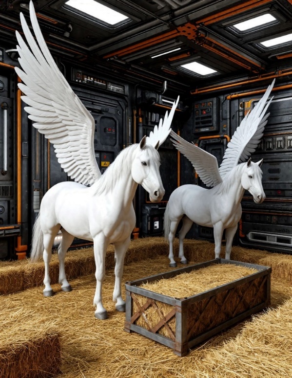 Кроме заготовленного сена подкармливаем растениями, растущими в оранжерее и витаминами, растворенными в воде. Искусственная гравитация позволяет животным двигаться по своему отсеку, иногда с седоками выходят на более продолжительные прогулки по коридорам и грузовым отсекам. Тулпары – любимцы всего экипажа. Каждый в свободное от дежурства время с удовольствие помогает ухаживать за ними.