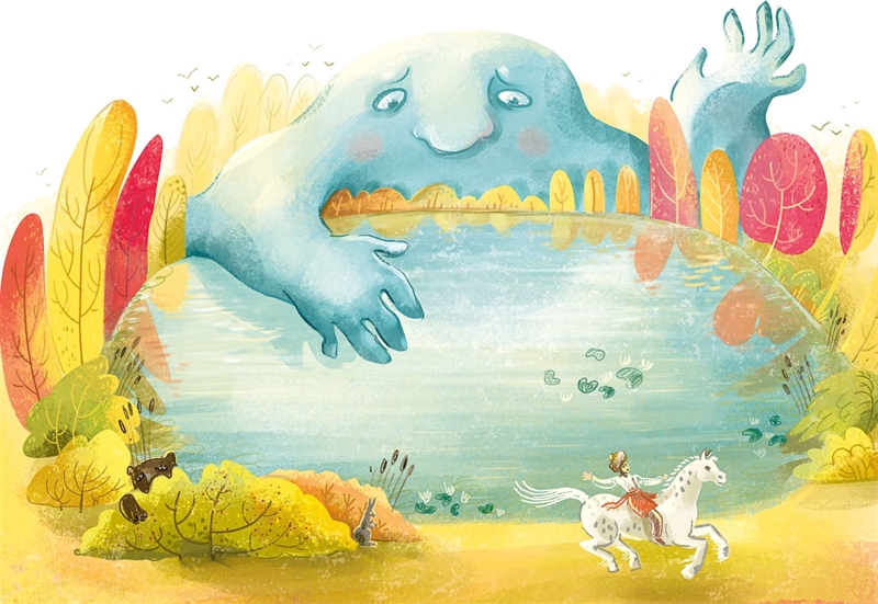 Абзалил был отличным наездником, самым лучшим в ауле. Сел он без седла и стремян на лошадь – и помчался вокруг озера, руками только за гриву держась. Лошадь, почуяв опытного наездника, послушно мчалась туда, куда ему было нужно. В один миг они вокруг озера обернулись. Подъехал Абзалил к тому месту, где его дух озера поджидал, спешился и говорит: