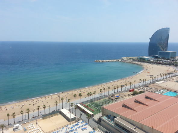 Можно даже не заметить, как Сант Себастиа перетекает в пляж Сант Мигель (Sant Miquel), а дальше в пляж Барселонетта (Barceloneta beach), где-то на стыке которых установлен памятник «Раненая звезда» работы Ребекки Хорн.