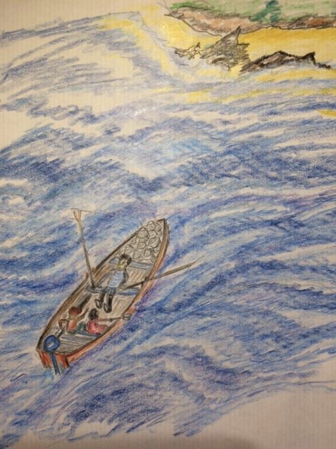 Подождав, когда через часок вода начала подниматься, мальчишки взялись за весла, сестренку усадили на корму рулить. Тронулись. Когда еще через час ребята начали уставать и сбавили темп, Сеня поднялась с банки-скамейки, приложила ладошку козырьком ко лбу и, всматриваясь в морскую даль, буднично произнесла: «А вот и наши летят навстречу».