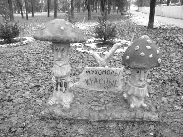 Парк благоустроен и выглядит как музей деревянной скульптуры под открытым небом, поскольку украшен цветными изваяниями веселых грибов-человечков (мухоморов, лисичек, боровиков, белых грибов и др.), героев русских сказок, сказок Пушкина и советских мультфильмов. Вместо урн возле скамеек стоят пни с глубокими выемками, да и сами скамейки украшены изображениями лесных персонажей. Ближе к воде появляются «морские фигуры», а на набережной и вовсе стоит гигантский «Чудо-юдо рыба-кит». Эту своеобразную детскую тематику продолжает и летний парк аттракционов.